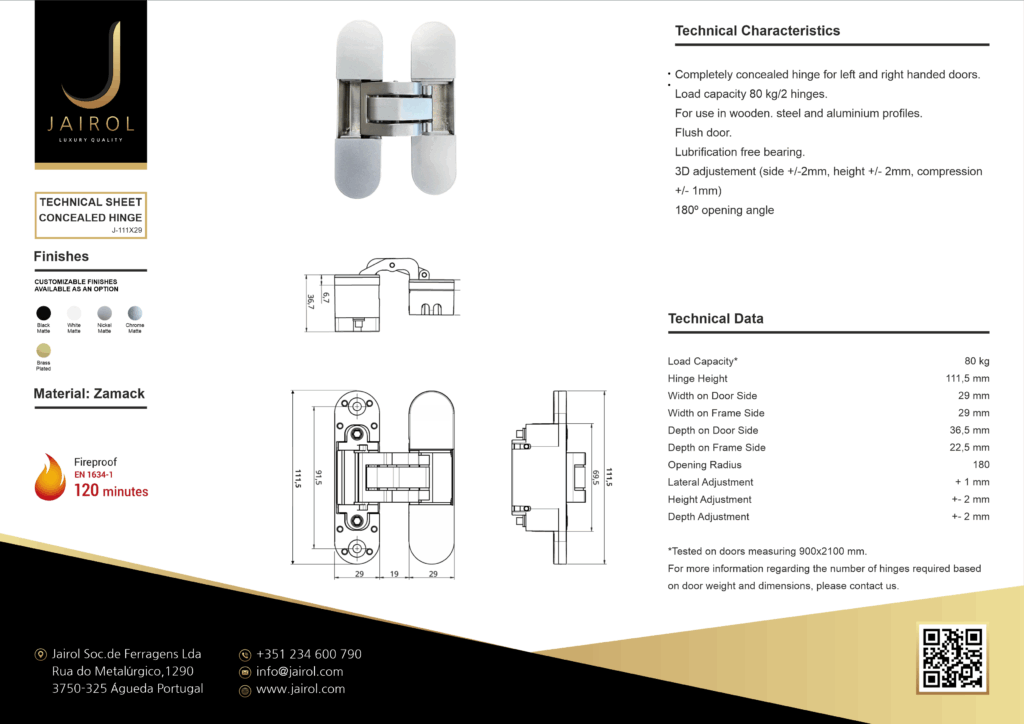 Todas as cores estão disponíveis mediante pedido. Por favor, contacte-nos em : info@jairol.com